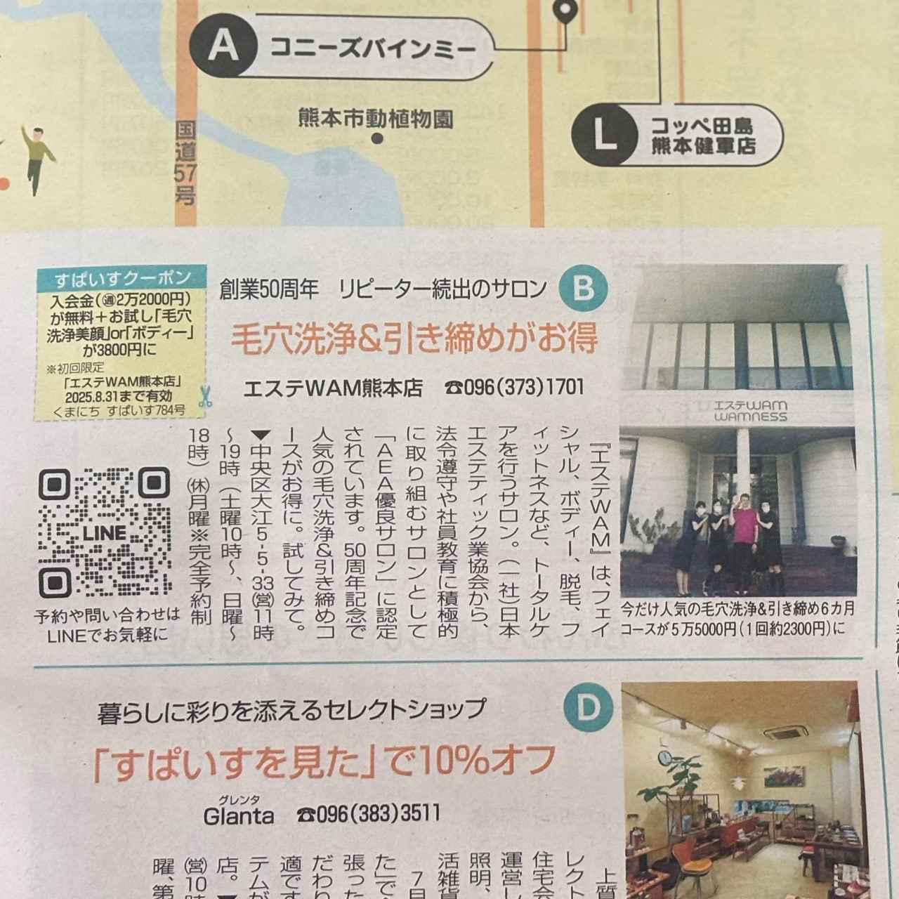 この度、2025年7月11日発行の熊本新聞「スパイス」に当サロン「エステwam」が掲載されました‼️